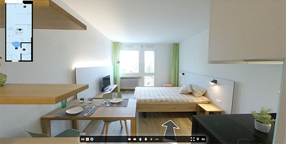 Wer die Studios persönlich erleben möchte – Besichtigung des möblierten Sudios nach telefonischer Voranmeldung: